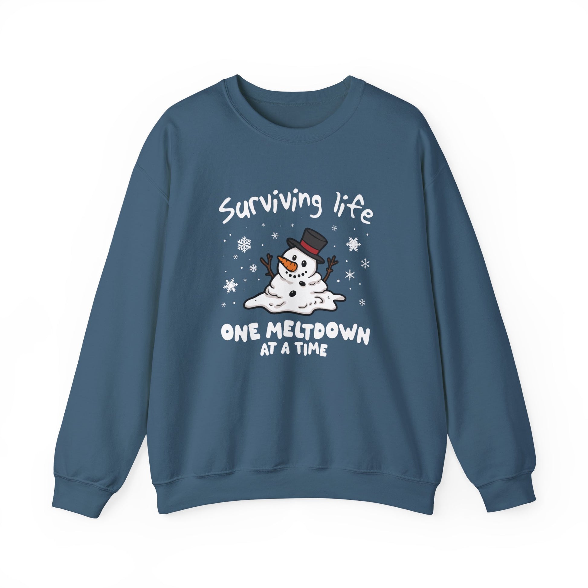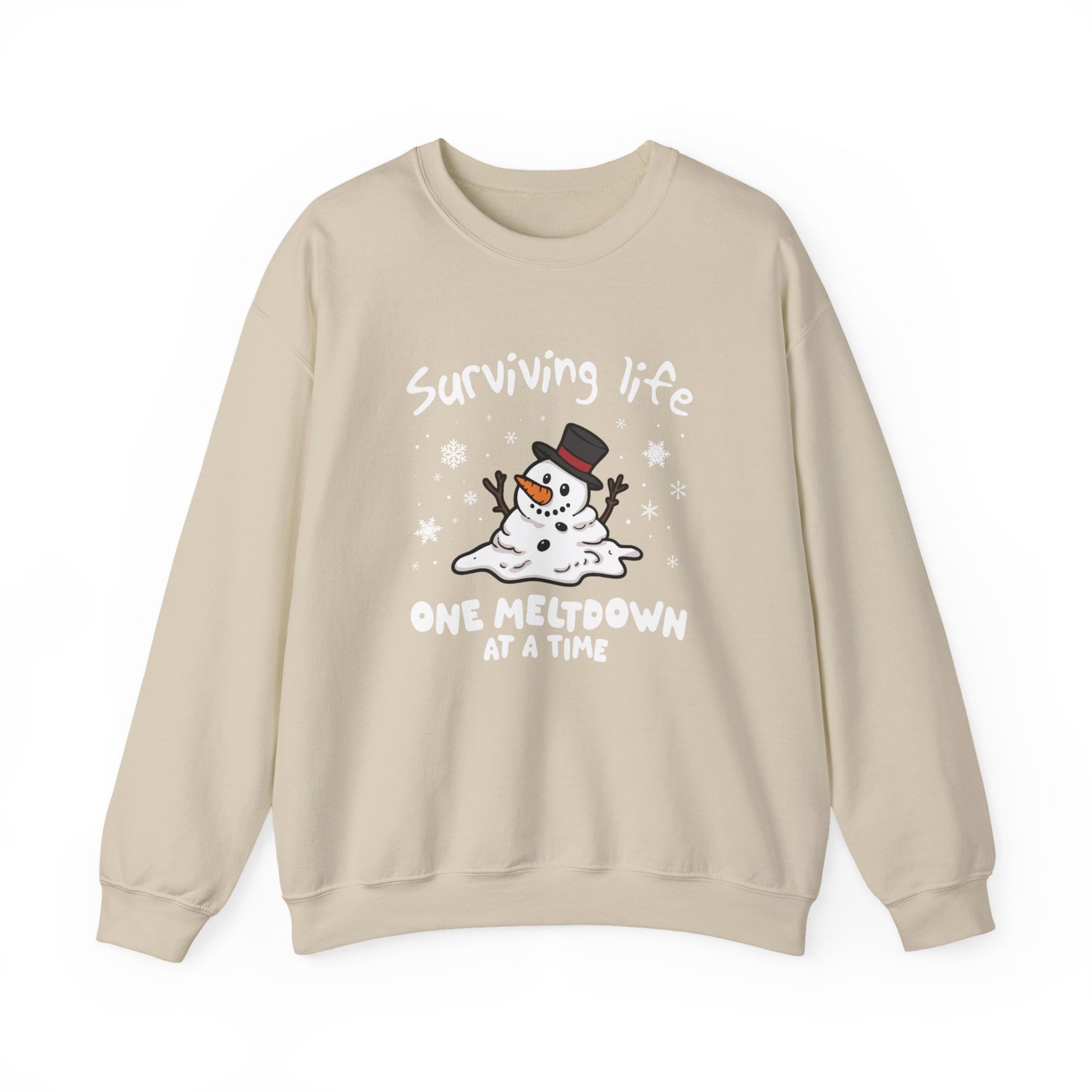 Snowman Christmas Sweatshirt, Survive One Meltdown at a Time, Holiday Winter Jumper, Funny Xmas Pullover, Cozy Festive Top, Unisex Winter